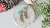 Bam! These cuties are perfect for the ballpark! Super lightweight and very shiny. These earrings feature gold mirror material and a sky blue seed bead topper.